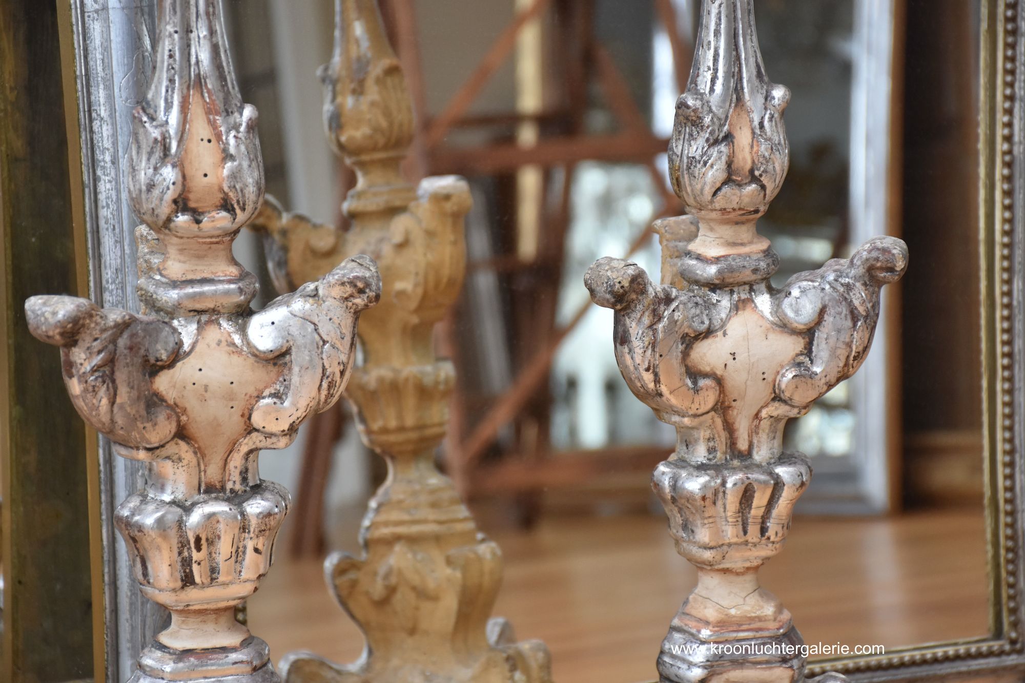 Silver-leaf finish is only in front of the torcheres.
