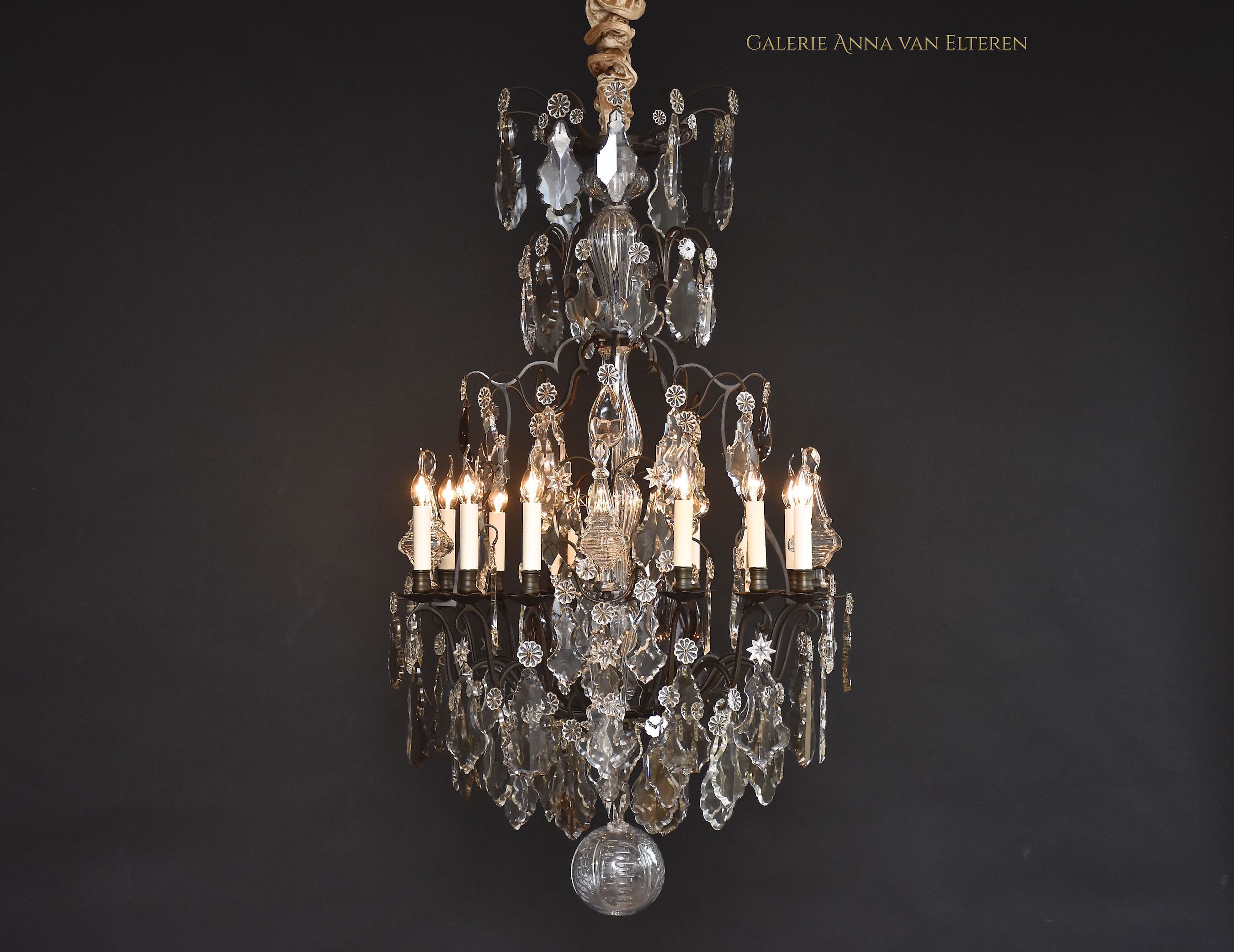 Een prachtige Franse kroonluchter met 12 lichtpunten. Met een originele donkere patina.